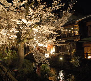 祇園の北側、四条通りから入ったところが祇園白川です。辰巳橋、辰巳大明神、白川沿いの桜並木、御茶屋や料亭など風情のある建物が並んでいます。