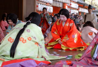 毎年 京都の八坂神社で、毎年正月に開催されている「かるた始」の写真です。