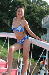 低位置から撮影すれば、足が長く、胴が短く、顔が小さくみえます。