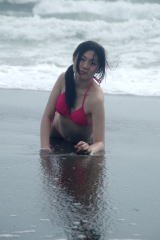 午後は誰かに絞ろうと考えて、彫りが深い顔で、身長もあり、すらっとした体型のRIKAさんを中心に撮影しました。その後、波打ち際で撮影している立花さんを終了間際に撮影しました。