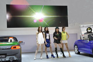 会場の状況、自動車とモデル・コンパニオンの写真集