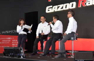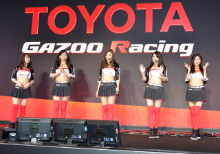 ステージが広く、背後を一般客が通らず、、豊田社長自らも登場されたTOYOTA GAZOOのレーシングチームを、