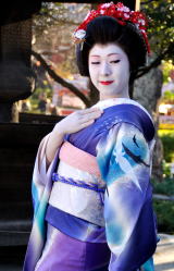 日常的に日本舞踊など芸事を習い、お座敷でお客様の接待をされています。芸者さんではなく、浅草観光振袖学院の社員です。さすがにきもののポーズはうまいですね。
