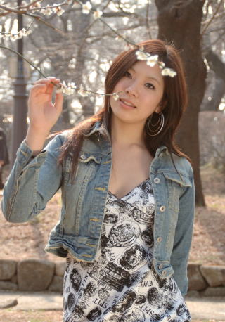 この写真は背景がいまいち、木の枝の中にモデルが入れば、梅の花が前ボケと後ボケになり、モデルが花につつまれ、浮かび上がった写真が撮影できます