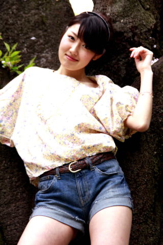 桃山莉乃 写真集 その4 桜の木に寄りかかる 東京写真連盟 2012年4月 所沢航空公園撮影会